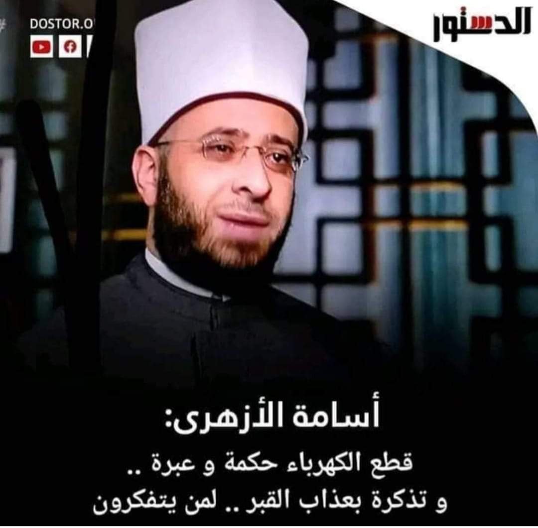 وقال الدكتور أسامة الأزهري عبر بيان قام بنشره على صفحته الشخصية بموقع التواصل الاجتماعى فيس بوك:” انتشرت في الساعات الأخيرة على مواقع التواصل الاجتماعي تصريحات مكذوبة على لساني تداولها البعض نصها ” أسامة الأزهري: قطع الكهرباء حكمة وعبرة.. وتذكرة بعذاب القبر لمن يتفكرون”.. تلك الشائعة كاذبة، شكلا ومضمونا.