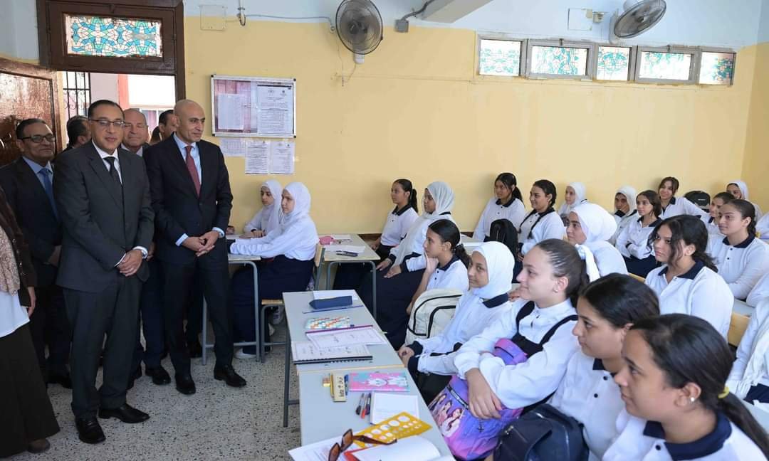وبدأ الدكتور مصطفى مدبولي زيارته للمدرسة بتفقد عدد من الفصول للصفين الأول والثاني الثانوي، وخلال تواجده بأحد فصول المدرسة التي أنشئت عام 1991، أجرى مدبولى حوارا وديا مع عدد من طالبات الصف الأول الثانوي حول المناهج الدراسية، ورأيهن في كثافة الفصول بعد القرارات التي تم اتخاذها لتخفيض عدد الطالبات في الفصل الواحد، حيث أشادت الطالبات بتقليص عدد الطالبات في الفصل، وأكدن أن هذا الأمر انعكس بشكل إيجابي عليهن من حيث أتاح لهن أجواء صحية أكثر، وفرصة أكبر للاستيعاب والاستفسار من المعلمين حول المناهج الدراسية.