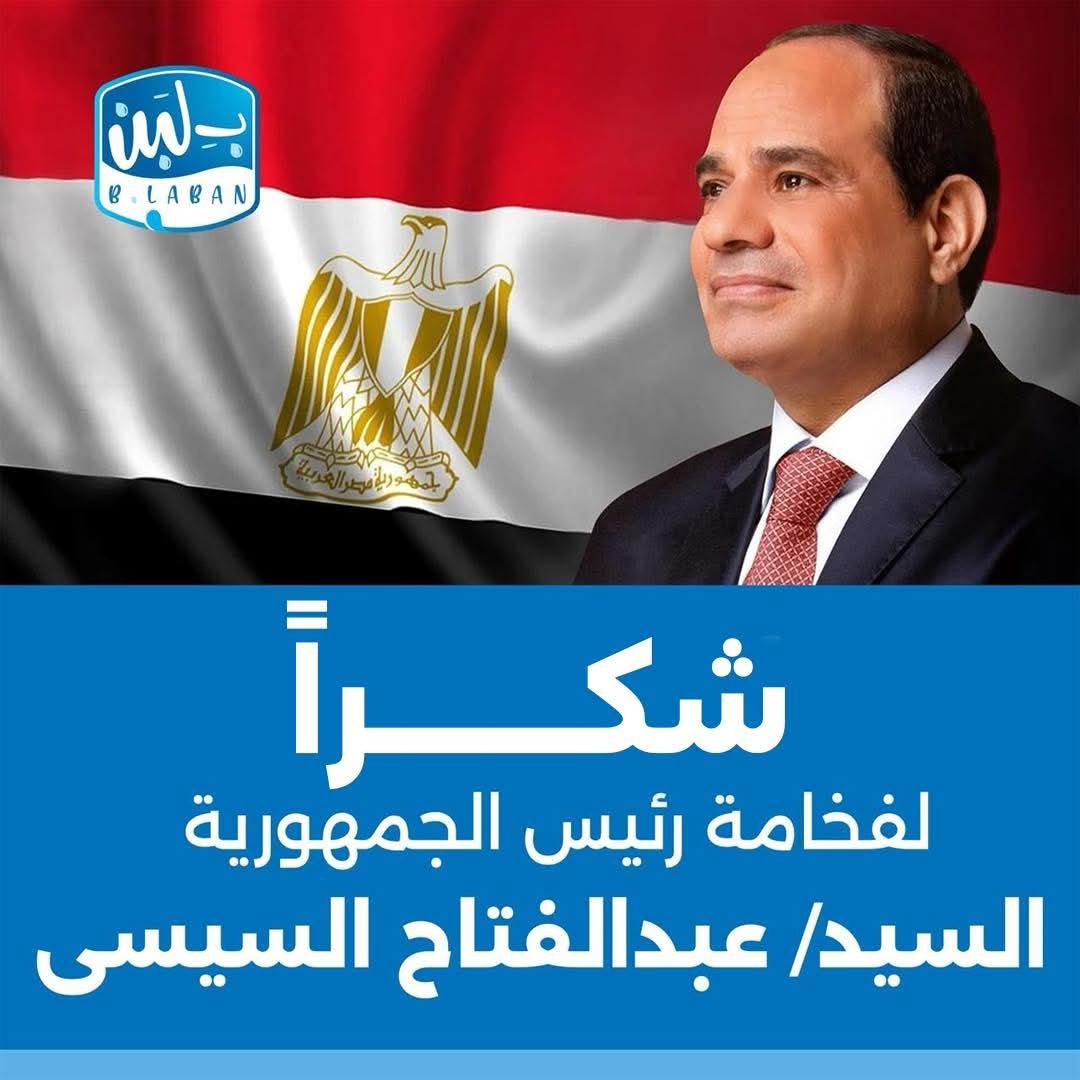 تقدمت شركة “بـ لبن” – إدارةً وعاملين – بخالص الشكر وعظيم الامتنان إلى فخامة الرئيس عبد الفتاح السيسي، رئيس جمهورية مصر العربية، على رعايته الكريمة واهتمامه الأبوي، ومتابعته الحثيثة لكل ما يمس أبناء هذا الوطن.
