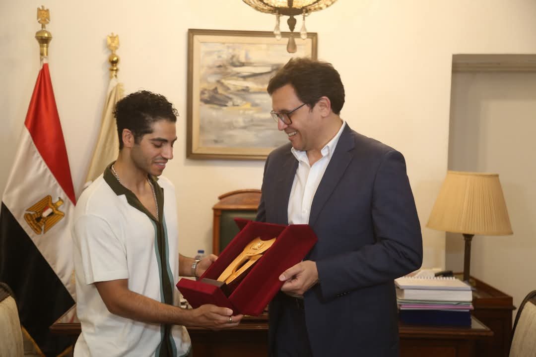 كذلك، دعا وزير الثقافة النجم العالمي للمشاركة في عدد من فعاليات الوزارة الفنية، بما في ذلك ورش العمل والمشروعات المسرحية، مؤكدًا أن تواجده وتعاونه مع المبدعين المصريين سيعزز من التفاعل الثقافي بين الداخل والخارج، معربًا عن أمله في أن يُلهم حضوره الشباب المصري، ويؤكد لهم أن التمسك بالجذور هو سر التميز الحقيقي في عالم مفتوح ومتغير.