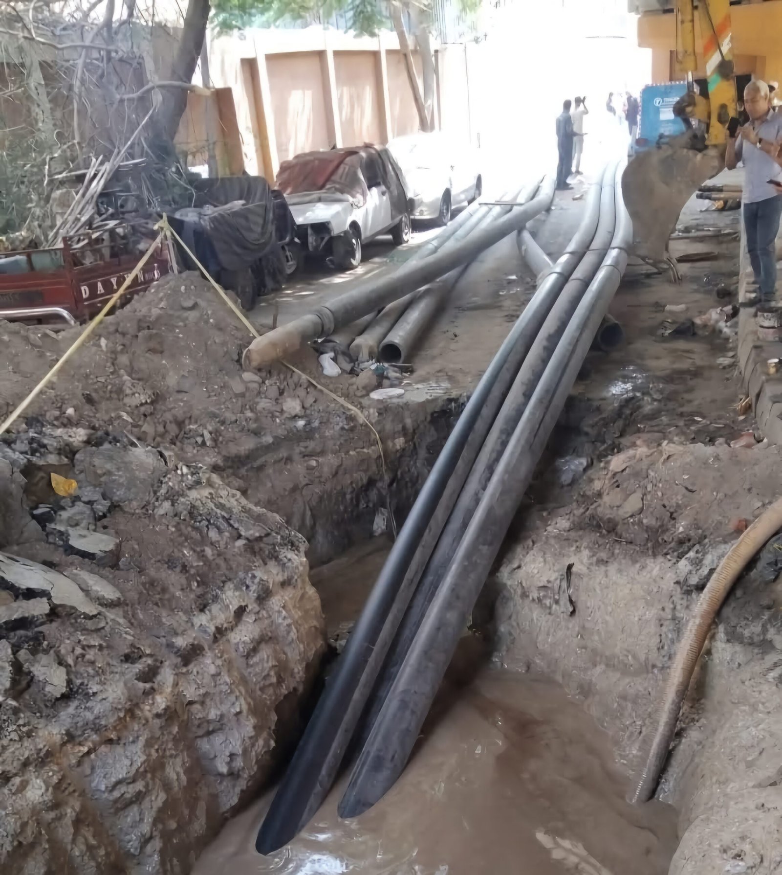 تواصل الأطقم العاملة جهودها للانتهاء من مد مصدر التغذية الكهربائية الإضافي إلى محطة محولات جزيرة الدهب، وجاري الان عبور المواسير والكوابل اسفل خطوط السكة الحديد بعد الانتهاء من مد الكوابل واختبارها تمهيدا لمراحل الاختبار النهائية وإطلاق التيار الكهربائي.