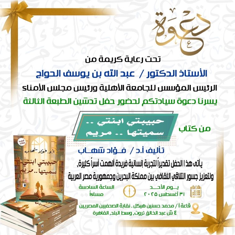 📖 هذا النص يأتي مواكبًا لتدشين الطبعة الثالثة من كتابي «حبيبتي ابنتي سميتها مريم»، غداً الأحد ٣١ أغسطس في قاعة محمد حسنين هيكل بنقابة الصحفيين المصريين.