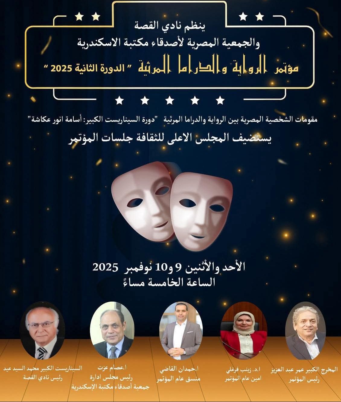 المؤتمر ينظمه نادي القصة برئاسة الكاتب السيناريست محمد السيد عيد، وجمعية أصدقاء مكتبة الإسكندرية برئاسة الأستاذ عصام عزت، ويُقام المؤتمر بالمجلس الأعلى للثقافة يومي غدا الأحد والإثنين 9 و10 نوفمبر، عند الخامسة مساءً، برئاسة المخرج الكبير عمر عبد العزيز، وأمانة الدكتورة زينب فرغلي.