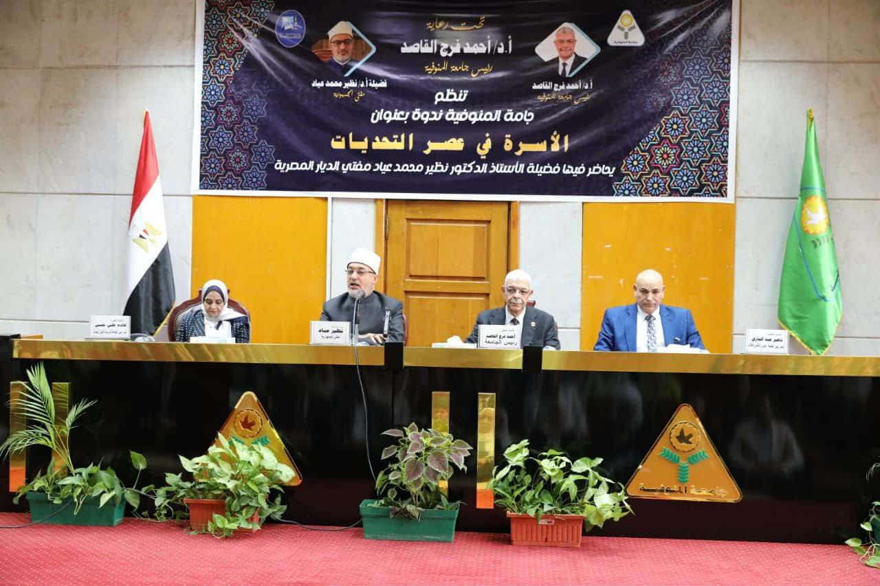 خلال كلمته في الندوة التي نظمتها جامعة المنوفية تحت عنوان “الأسرة في عصر التحديات”، شدد فضيلة الأستاذ الدكتور نظير محمد عياد، مفتي الجمهورية ورئيس الأمانة العامة لدور وهيئات الإفتاء في العالم، على أن الإسلام هو دين السلام والعدل والرحمة، مؤكدًا أن سلوكيات المتطرفين لا تمت للإسلام بصلة، وأن حماية المجتمع تبدأ من وعي الفرد ومسؤوليته.