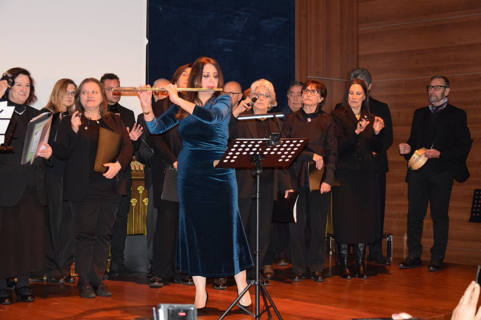 وشهدت الأمسية مفاجأة خاصة للجمهور، حيث قدّمت قائدة الكورال مقطوعة موسيقية غنائية بعنوان “سلام لكِ أم الدنيا”، في تحية رمزية للدور المصري الرائد وتجسيدًا لعمق العلاقات المصرية–الإيطالية عبر العصور. وقد شاركت الدكتورة رانيا يحيى، مديرة الأكاديمية، بالعزف على آلة الفلوت مع الكورال أثناء أداء هذه المقطوعة التي أهدتها المؤلفة إلى مصر احتفاءً بهذه المناسبة الثقافية الكبرى وتقديرًا للدور المصري الملهم، خاصة في أعقاب افتتاح المتحف المصري الكبير.